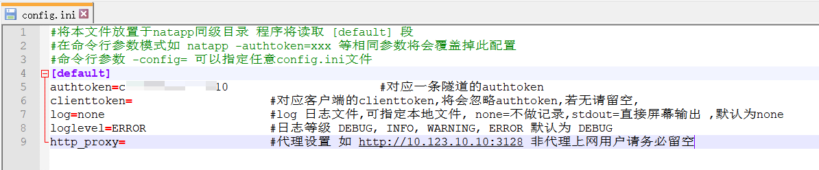 - 将申请到的相应隧道后做好一系列配置(如端口号等),将authtoken等信息复制并做好记录