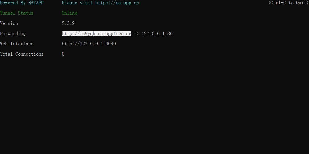 - 启动运行natapp.exe(放后台运行,不要关闭),并复制URL